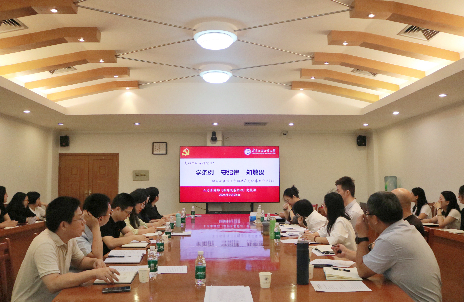 接着,人力资源部(教师发展中心)党支部召开了全体党员大会。支部书记谢文新结合学校党纪学习教育工作安排,为全体党员讲授党纪学习教育专题党课:学习新修订的《中国共产党纪律处分条例》。要求全体党员要认真学纪,深刻认识修订《条例》的重要意义。准确知纪,提升党纪学习教育针对性有效性。自觉明纪,以案明纪警钟长鸣,严格守纪,推动党纪学习教育走深走实。